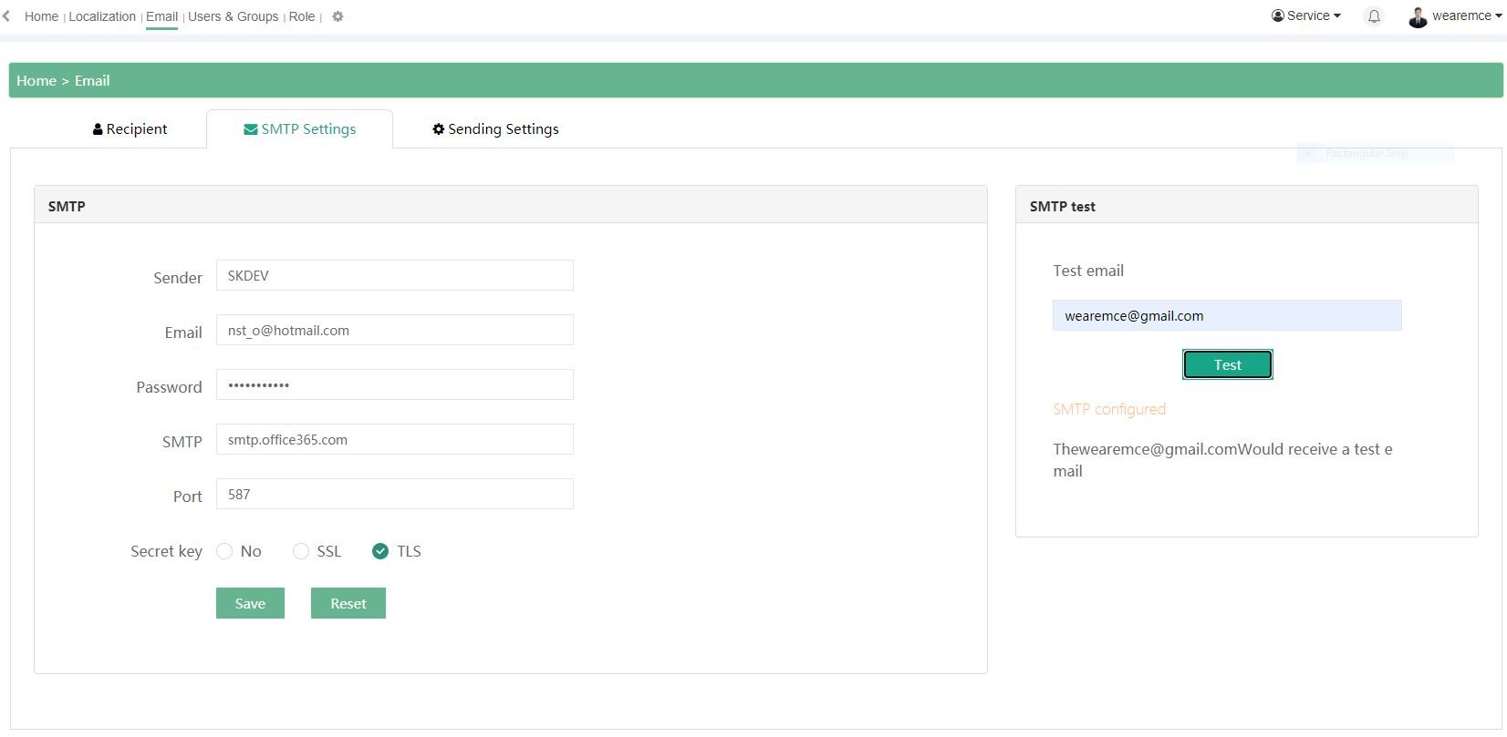 5. ทำการนำค่าต่างๆที่แสดงใน SMTP SETTING Email เราไปใส่ใน V-NET