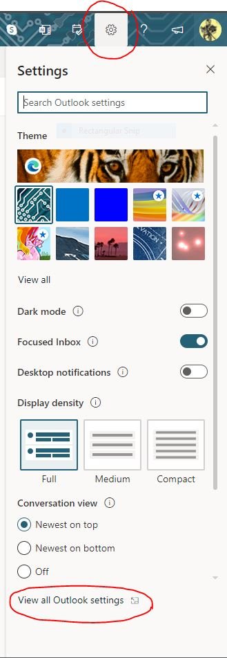 3. ไปที่ HOTMAIL หรือ LIVE เมลล์ใดๆ ก็ตามจากเครือเดียวกัน กดปุ่มฟันเฟืองหรือ SETTING จากนั้นเลือก View All Setting เพื่อไปหน้าถัดไป
